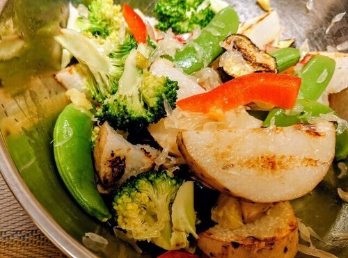 長芋と茄子はオイルかけて焼いて ブロッコリーとスナップエンドウはレンジ 国産パプリカ 国産レモンとオリーブオイルと白だし少し混ぜ混ぜしたので和えて 文旦の果肉をちらしてみた 食べる時にレモン塩かワイン塩と胡椒などでどうでしょ こないだ ISETAN DOO…